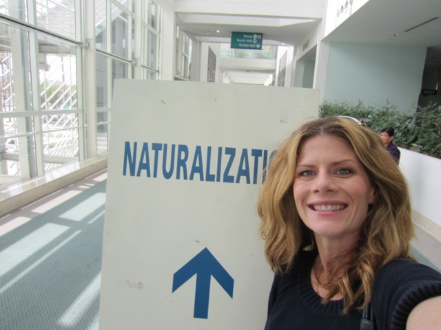 I have to say I was very moved by the Naturalization Ceremony – the swearing in, the Oath of Alligiance, the Pledge of Allegiance, the National Anthem. There was a video message by President Obama, welcoming all 3504 of us to the country, and reminding us of our responsibilities both to ourselves, and our new nation. He encouraged us to be the very best we can be in order to serve this country we’d chosen. Finally there was a video presentation of American pride and landscape set to Lee Greenwood’s song “God Bless the USA”. I’m not ashamed to say I cried a bit. The officiant spoke of the journey it took to get us to this day, and though I didn’t arrive in the bottom of a ship plagued by scurvy, or try and swim from Cuba, or cross the boarder in the dead of night hoping for a new and better life, my journey was long and often difficult. I’ve had 3 different visas, one temporary green card, one permanent green card and I’m finally a citizen. Every step took time, effort and money. I crossed every I and dotted every T, and I can’t believe all the “proving” of my legitimacy is finally at an end. I belong here now and don’t have to keep authenticating it. It fills me with both pride and relief .