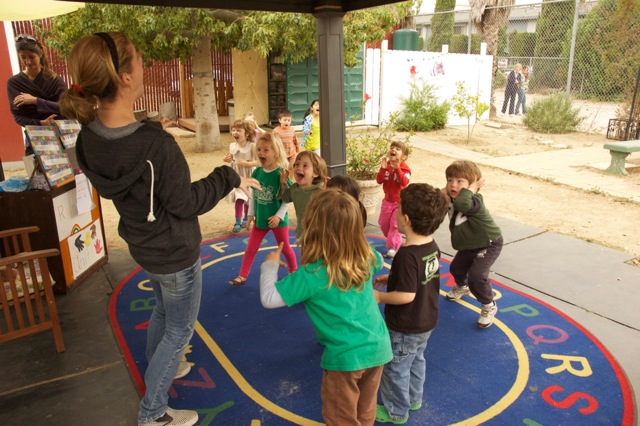 Looking back at the last two years I’m struck with what a special experience it was and how much I personally got out of it especially since I wasn’t sure I wanted to do it in the first place. The Sherman Oaks Cooperative Nursery School is situated at the side of a huge local park. It’s essentially a fenced-in dirt lot that over time the co-op members have continued to improve. We now have three little houses for a library, dress up, kitchen, and toys. Five various sized sheds for school supplies, gardening, sports and maintenance equipment. A phenomenal playground with a sea of playhouses, a sandbox and equipment for the kids. A permanent floor and cover for circle time, snacks and activities, a bathroom and tons of sail shades. It’s a childhood oasis run by a marvelous and patient teacher who truly loves children. It’s also a co-op which, before I started, I had absolutely no experience with and, if asked, probably would have said I wasn’t into.