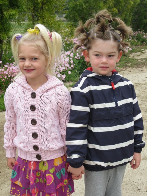 Lochie (on crazy hair day) with his picnic buddy and BFF Mia.