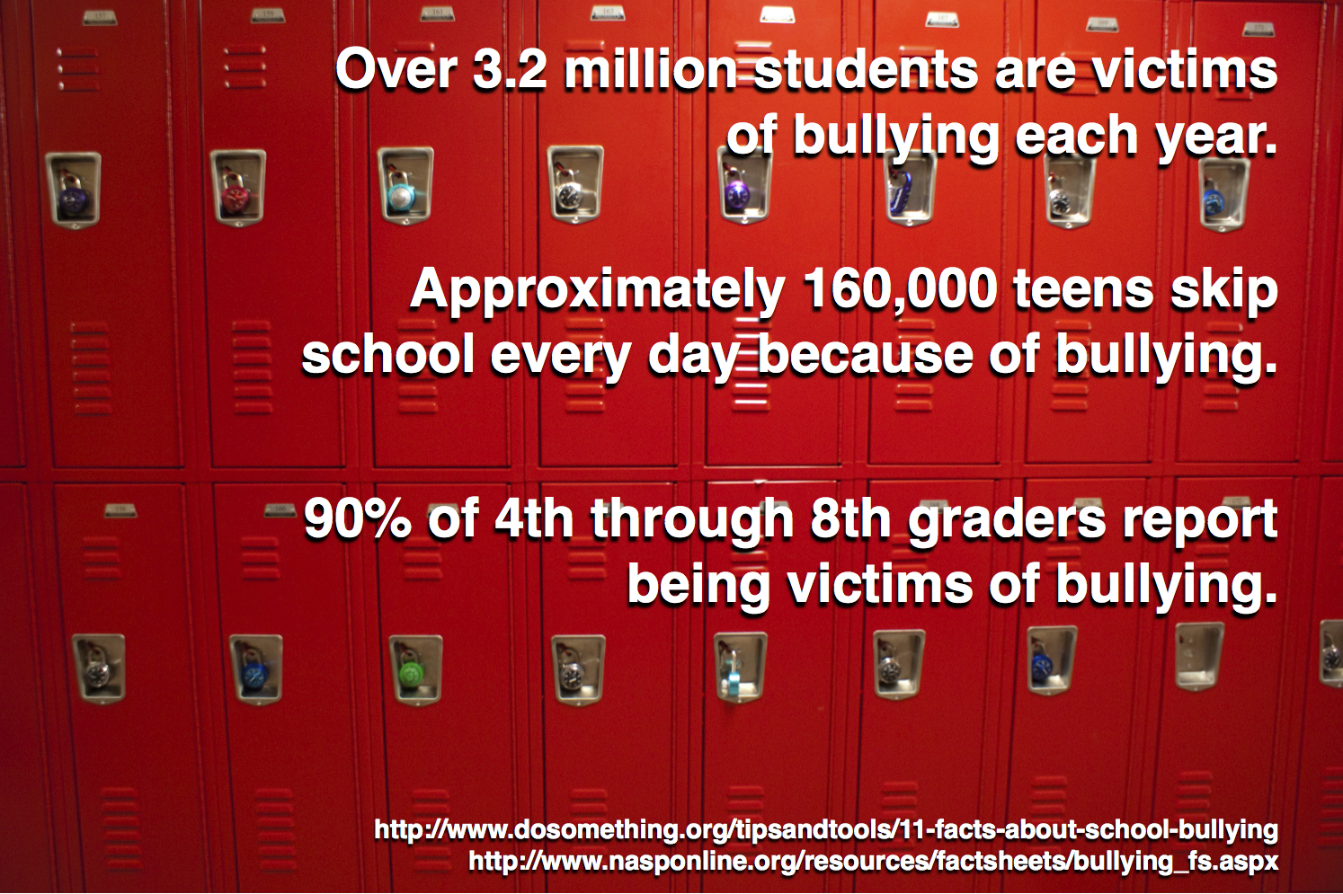 I know from personal experience how hard this kind of bullying can be to handle. How painful it is. How sometimes you’d just prefer to be punched in the face then deal with one more day of someone trying to break you. I know what a toll it takes on your confidence but you have to keep reminding yourself THE BULLIES CAN’T WIN. You have to be stronger than them. No one should make choices for you. No one is allowed to tell you how to feel about yourself or dictate your actions. They can’t defeat you unless you let them, and lest you think you’re all alone you’re not. Bullies have been around forever and personally, I believe life has a way of catching up with them. Whether your bully ends up with no real friends or honest relationships, whether they’re unable to love fully or truly be happy, weak minded, small, petty people pay for it in the end. I know that’s not much to hold on to when you’re in the thick of it, but knowing that fact somewhere in the back of your head might allow you to suck it up for just one more day. There are too many kids who felt they’d rather end it than live with the pain of the bullying anymore. This. Should. Not. Be. We can’t allow ourselves to live in the world the bully creates. We must try with all we have to rise above. Life is too wonderful and precious to forfeit to exhaustion.